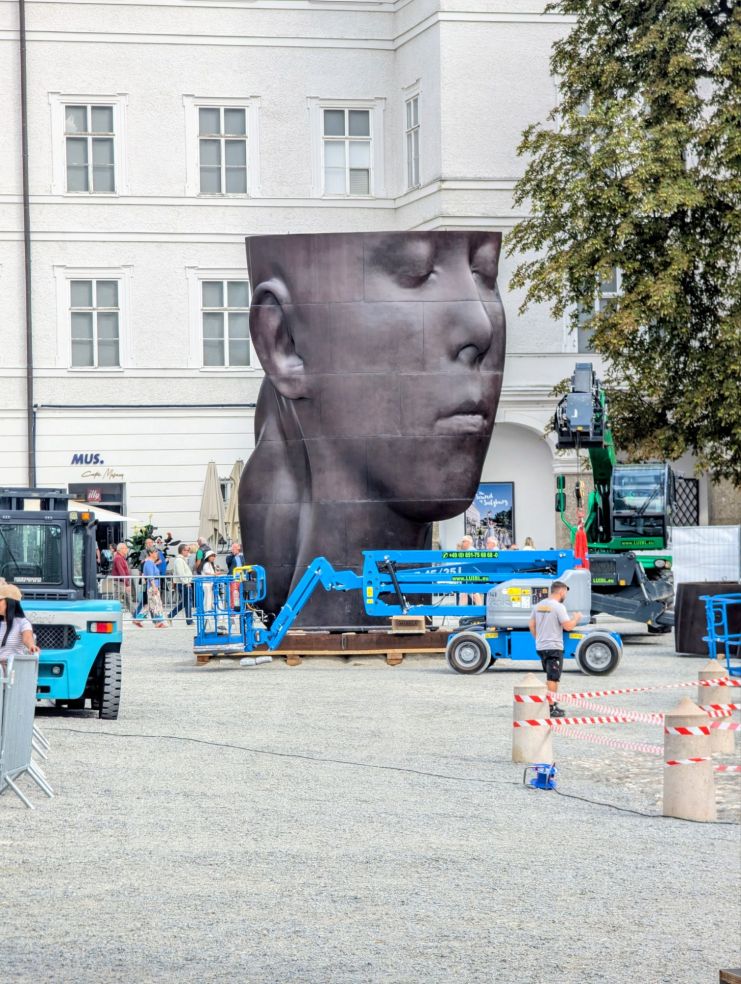 In den vergangenen beiden Monaten bereicherten fünf gusseisernen Frauenköpfe die Salzburger Altstadt. Uns und vielen anderen gefielen die monumentalen Skulpturen des spanischen Künstlers Jaume Plensa ausgesprochen gut. Leider werden die Köpfe gerade abgebaut, denn ein Amerikanischer Sammler hat sie gekauft. Ihr Wert wird mit 15 Millionen Euro kolportiert.