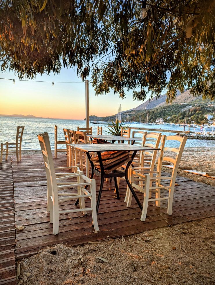 Seit 28. September leben wir im Wohnmobil und verbringen den Herbst im warmen Süden. Gut, warm war’s auch, aber im Großen und Ganzen ist es wettermäßig nicht so dolle. Mein Techniker segelt mit seinem Sohn, Freunden und Enkeln seit gestern vor Athen und ich hüte eine Woche das Wohnmobil allein. Leider gibt es nahe der Hauptstadt keine Campingplätze und so muss mein Mann mit dem Bus eine sechseinhalb stündige Busfahrt auf sich nehmen. Mein Mitleid hält sich in Grenzen, denn anhaltender Aktionismus fordert eben seinen Tribut. Ich hoffe, dass ich wenigstens noch zum Baden komme, ansonsten werde ich schreiben oder mich ein wenig im Dorf herumtreiben. Wir haben dort ein gemütliches Stammlokal mit bestem Service und grandioser Aussicht entdeckt.