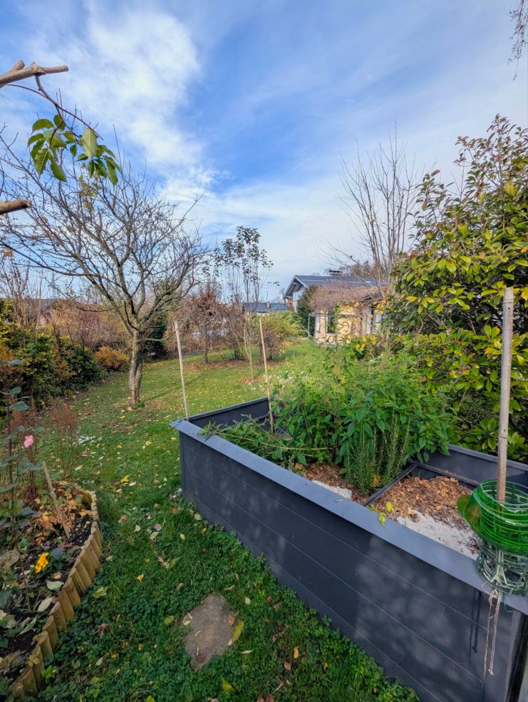 … für uns gab es jetzt genug zu tun. Auf dem Rasen lag jede Menge Laub. Ein Laubroboter ist leider noch nicht erfunden. Also mussten wir selbst ran. Es kamen ein paar stattliche Haufen zusammen und die wurden in die Kompostierbehälter verfrachtet. Nach der Zugabe von Kompostbeschleuniger wird relativ schnell Erde für nächstes Jahr daraus.