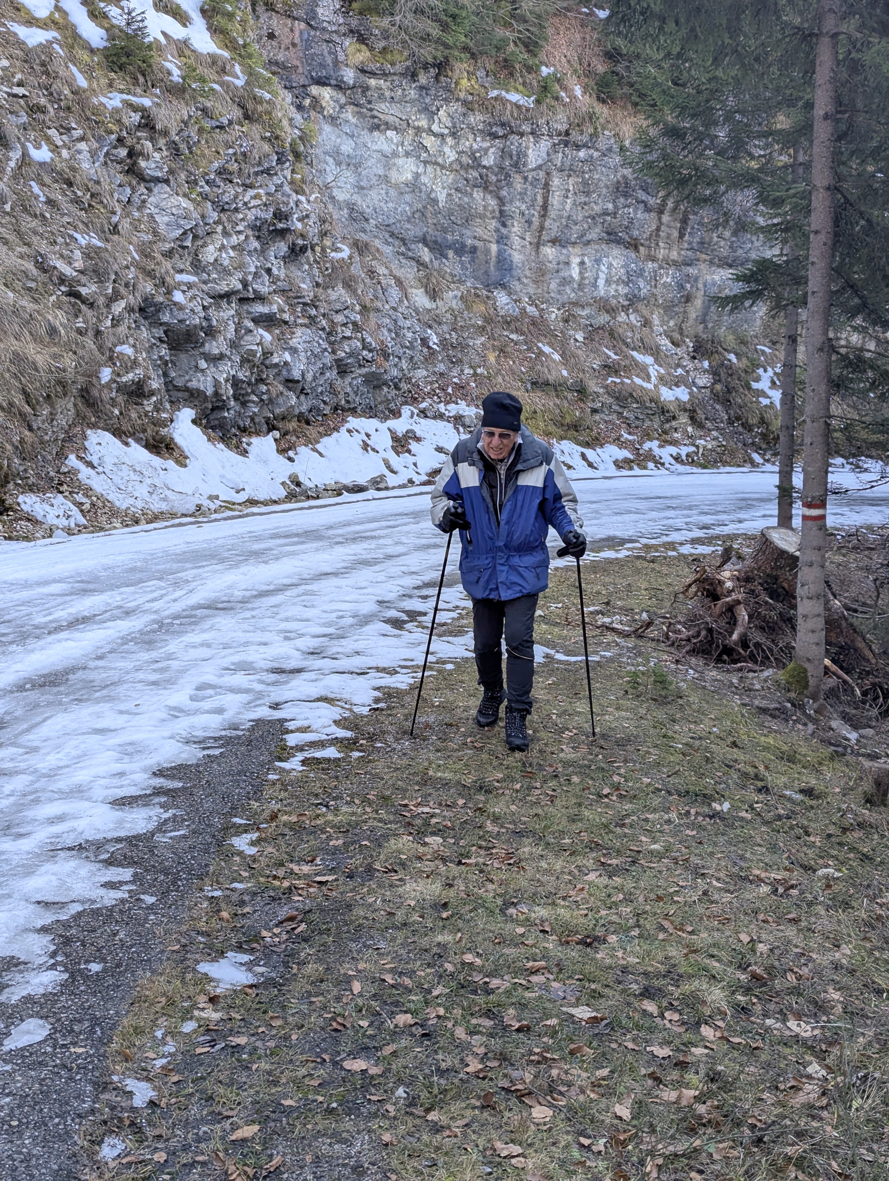 Wir flüchten aus dem Nebel in die Berge und wandern der Sonne entgegen. Vitamin D tanken und dem Gemüt Licht schenken. Die Wanderung ist abschnittsweise mühsam, denn sie führt über eisige Wege und steile Waldabschnitte, aber das gute Essen in der Hütte lässt uns das schnell vergessen. Am Rückweg wird es rasch dunkel, aber da haben wir die gefährlichen Stellen schon hinter uns. Die Stille des Waldes, die kühle saubere Luft tut uns gut. Die Batterien sind wieder aufgeladen und wir sind bereit für die nächsten Tage in der Düsternis des Tales.