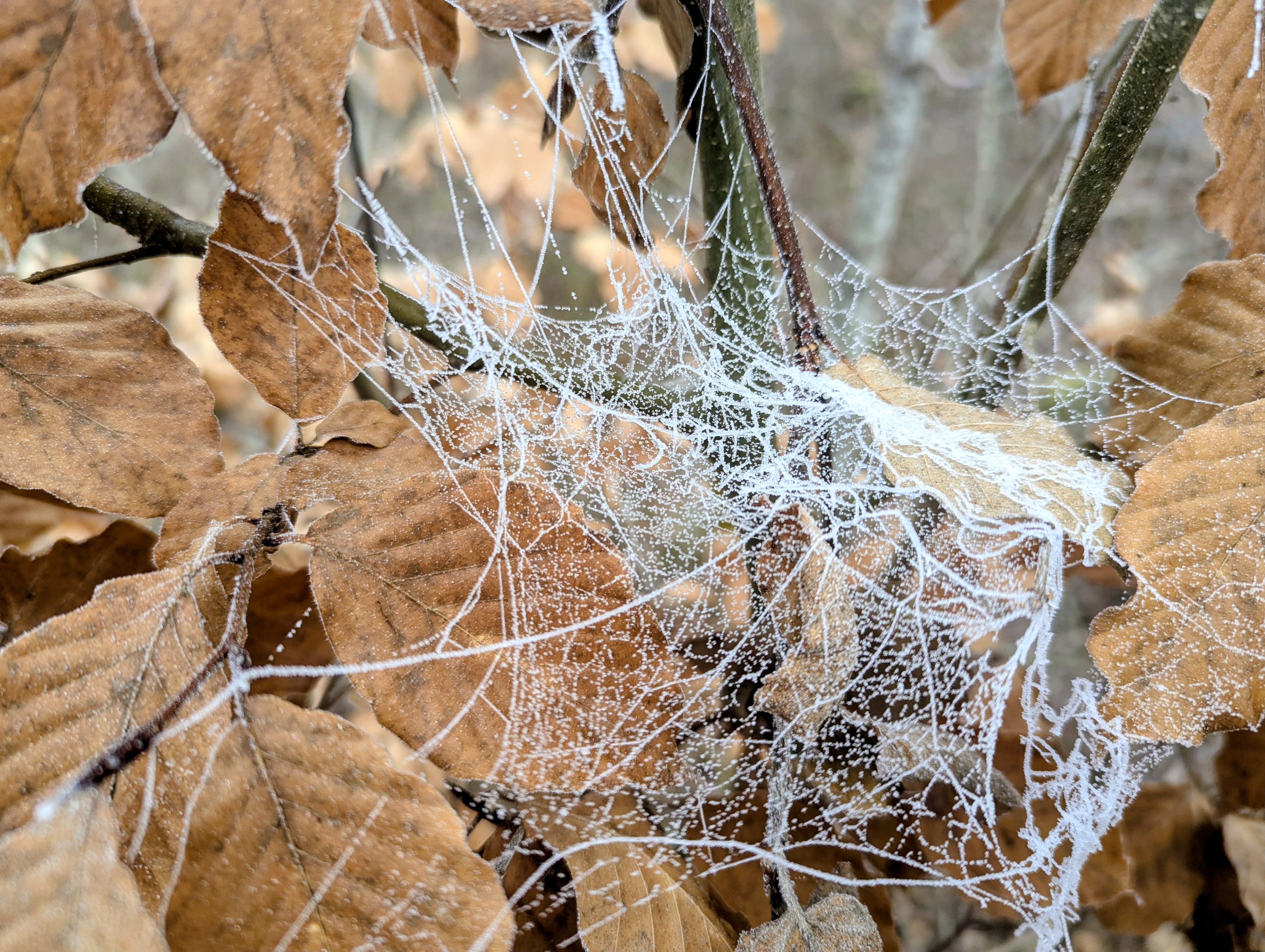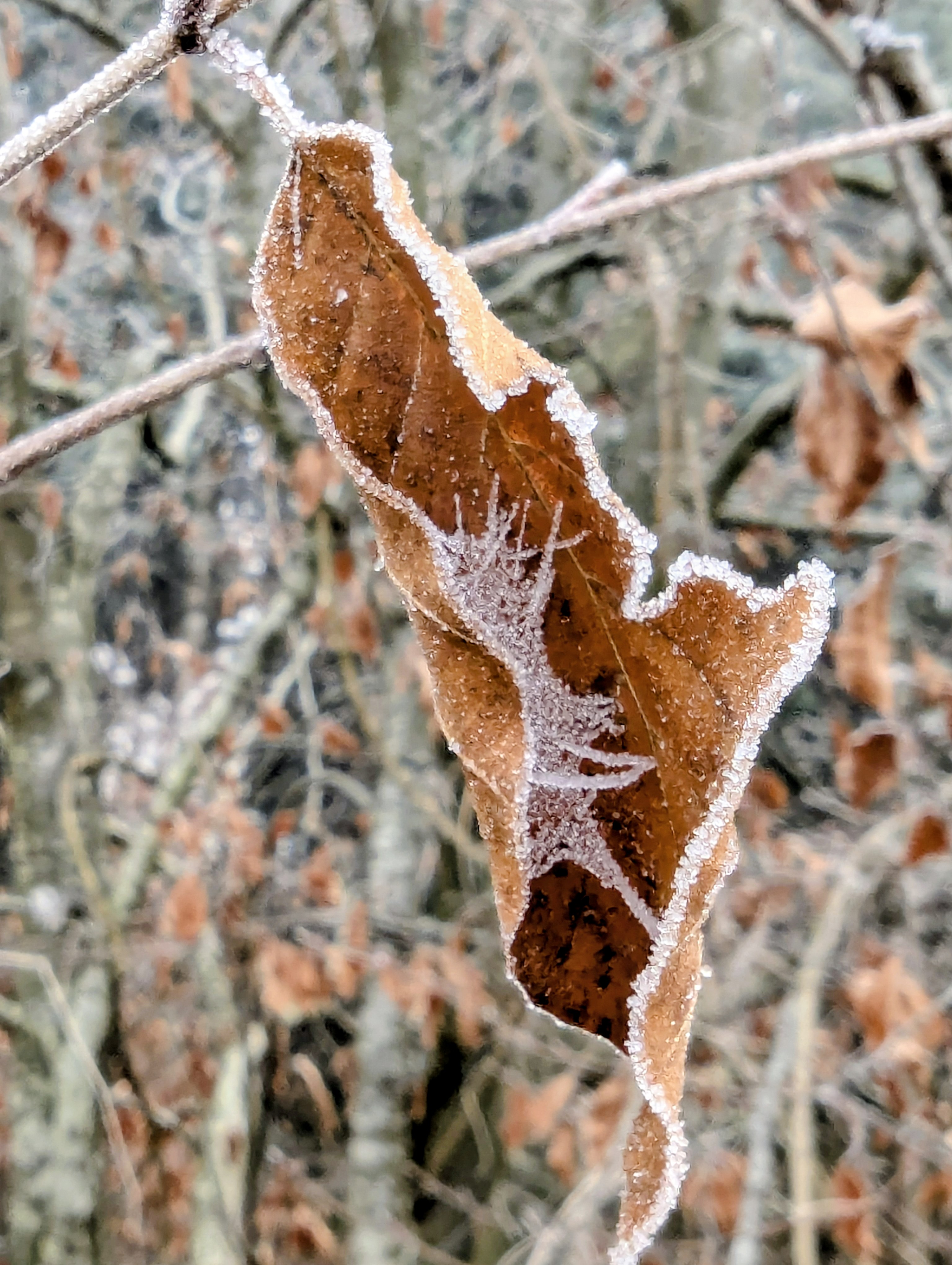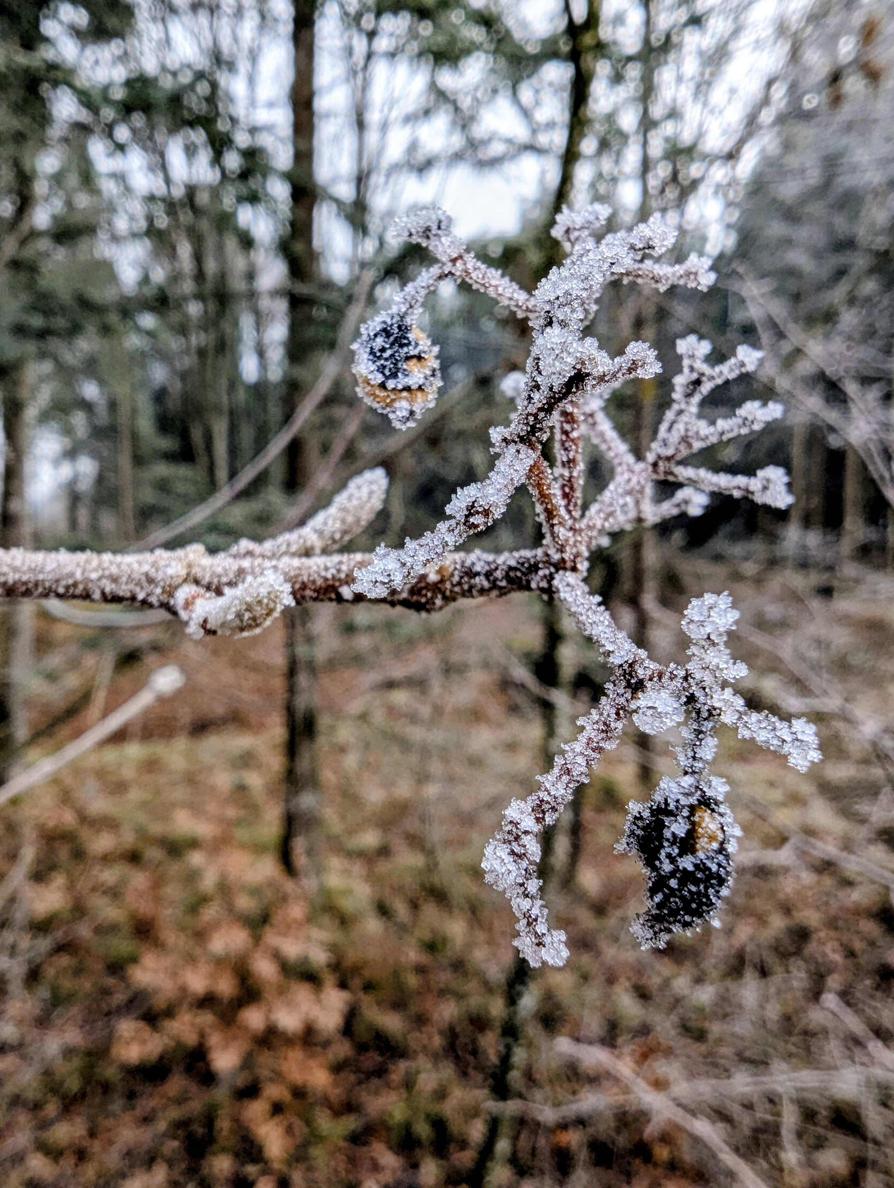 Der Garten trägt sein frostiges Kleid und bezaubert auf seine Weise. Der Reif ist ein kleiner Trost für den fehlenden Schnee, der nächste Woche endlich kommen soll.