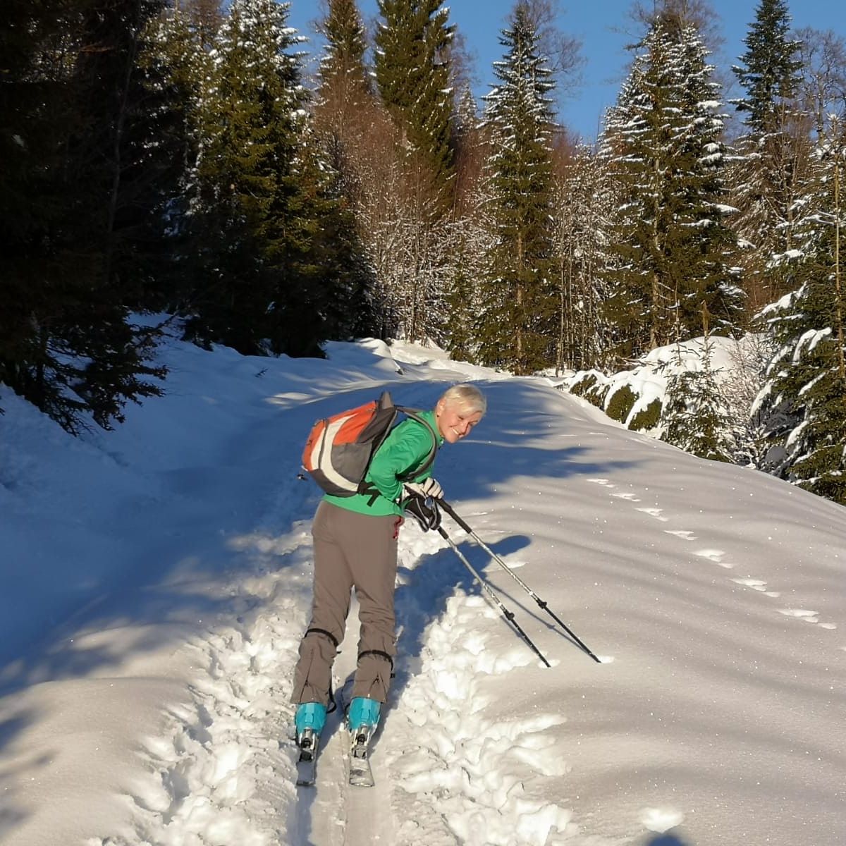 Leider kann ich ihm nicht mehr folgen, denn ich möchte meine derzeit schmerzfreien Knie nicht herausfordern. Ich liebe das Wandern auf Skiern durch den Schnee und die frische Bergluft genieße ich besonders. Dabei ist das Aufsteigen überhaupt kein Problem, nur das abfahren. So bleibt mir nur die Erinnerung an vergangene Jahre, als dies noch möglich war. Na ja, man kann eben nicht alles haben.