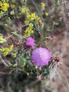 In der unwirtlichen Geröllwüste leuchten uns vereinzelt Blüher entgegen. Sie sind eindeutig zäher als wir. Jeder Schritt in der Hitze macht uns zu schaffen. 🥵. Mein Sonnenhut liegt nutzlos an Bord und ich verwünsche meine Schusseligkeit.