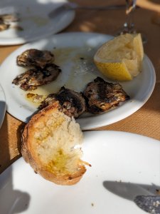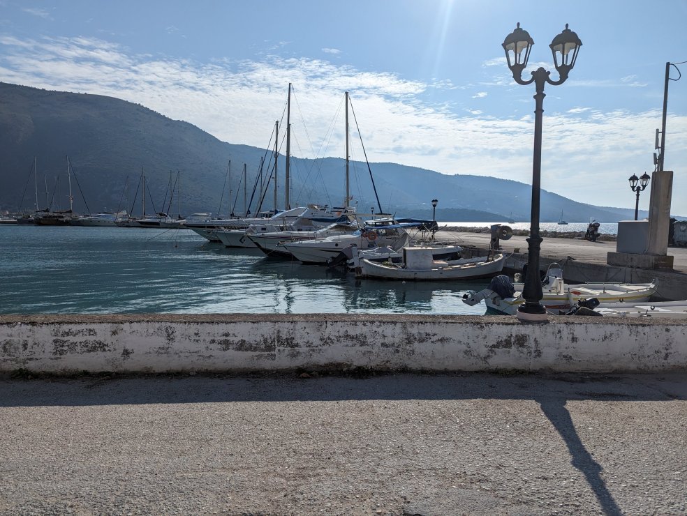 Tags zuvor waren wir am Hafen und unterhielten uns in der Marina mit ein paar Seglern. Beim Techniker poppten gleich wieder Segelsehnsüchte auf. Er wünschte sich seine „Große“ herbei und wird versuchen seinen Freund, der uns das Schiff heuer abgekauft hat, diesen Liegeplatz schmackhaft zu machen. Ich glaube aber, dass der sich in Kroatien recht wohlfühlt, obwohl die Marina dort doppelt so teuer ist. Sie hat aber auch mehr zu bieten. Blitzsaubere Sanitäranlagen zum Beispiel, die es hier gar nicht gibt. Was es hier aber gibt, sind (zumindest in der Nachsaison) himmlische Ruhe, frischen Fisch und überraschend guten Wein. Mir reicht das und ich bin zufrieden.