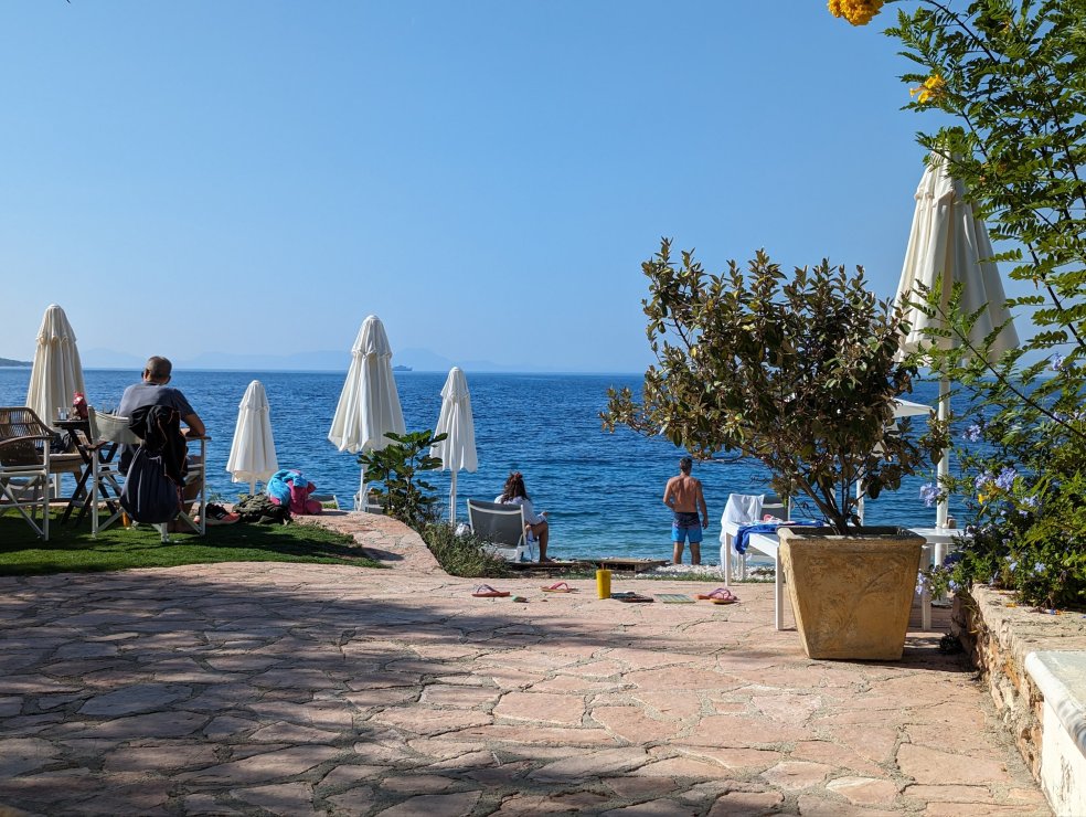 Nach 1.700 speziell in Albanien anstrengenden Kilometern gönnen wir uns einige Tage Friede, Freude, Strandleben. Es sind noch dermaßen viele Camper unterwegs, dass wir, obwohl wir heuer später dran sind, keinen vernünftigen Stellplatz finden. Die Meisten warten auf den Termin für die Fähre von Igoumenitsa nach Italien.
