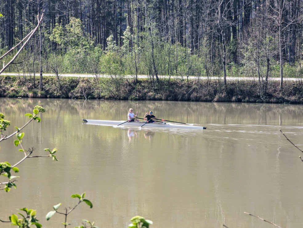 Der sommerliche Frühling lockt die Ruderer auf die Schmelzwasser führende Salzach.