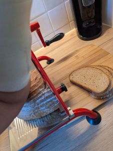 Im Haushalt verzweifle ich manchmal. Es läuft halt nicht wie gewohnt. So sieht also Abhängigkeit aus, denke ich. Sch … Aber sei nicht undankbar, flüstert das Ego, es hätte auch die rechte Hand sein können, oder noch schlimmer. Alles, wofür man die Linke benötigt; Tuben und Tegel öffnen, Brot, Gemüse, Wurst schneiden ging anfangs gar nicht, weil die Hand bei Belastung trotz der Schmerzmittel weh tat. Aufgrund der ständigen Überbelastung bildeten sich dicke Venenstränge an der rechten Hand. Aber was solls- Ego aus, Improvisation an!
