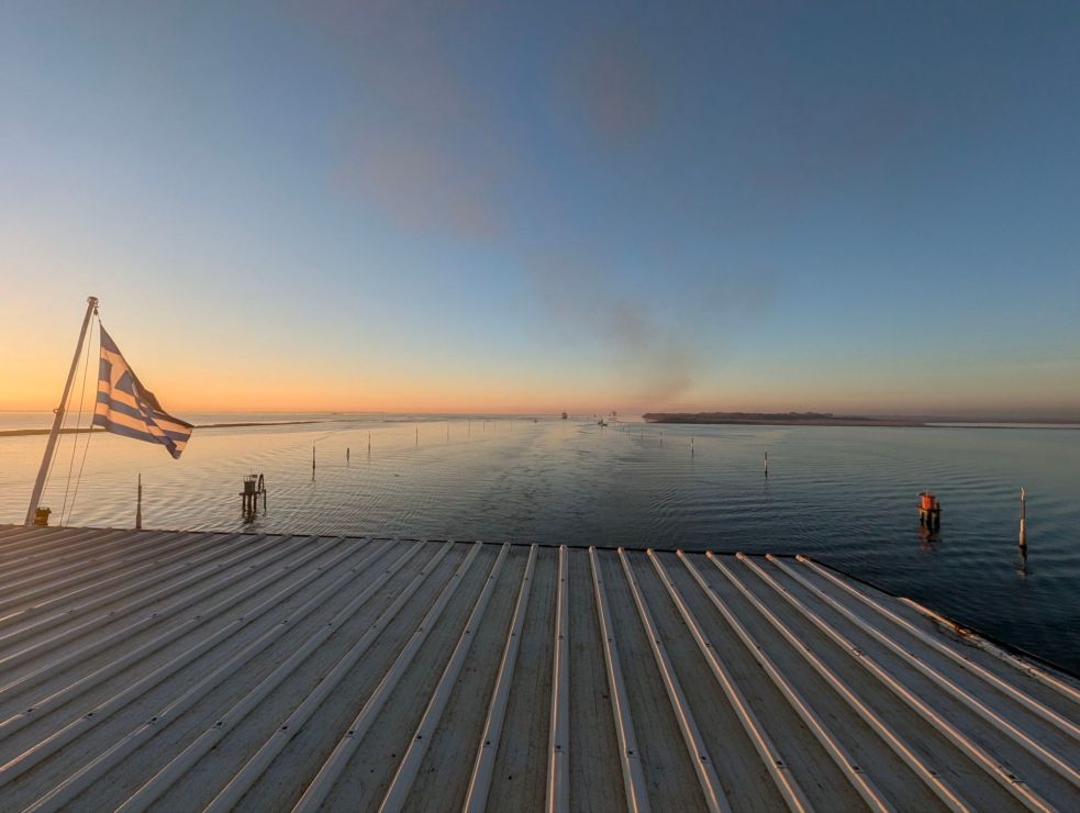 Wie auch immer, wir konnten in Ruhe unseren Schlaf nachholen und 24 Stunden später einen mystischen Morgen in der Lagune von Venedig genießen.