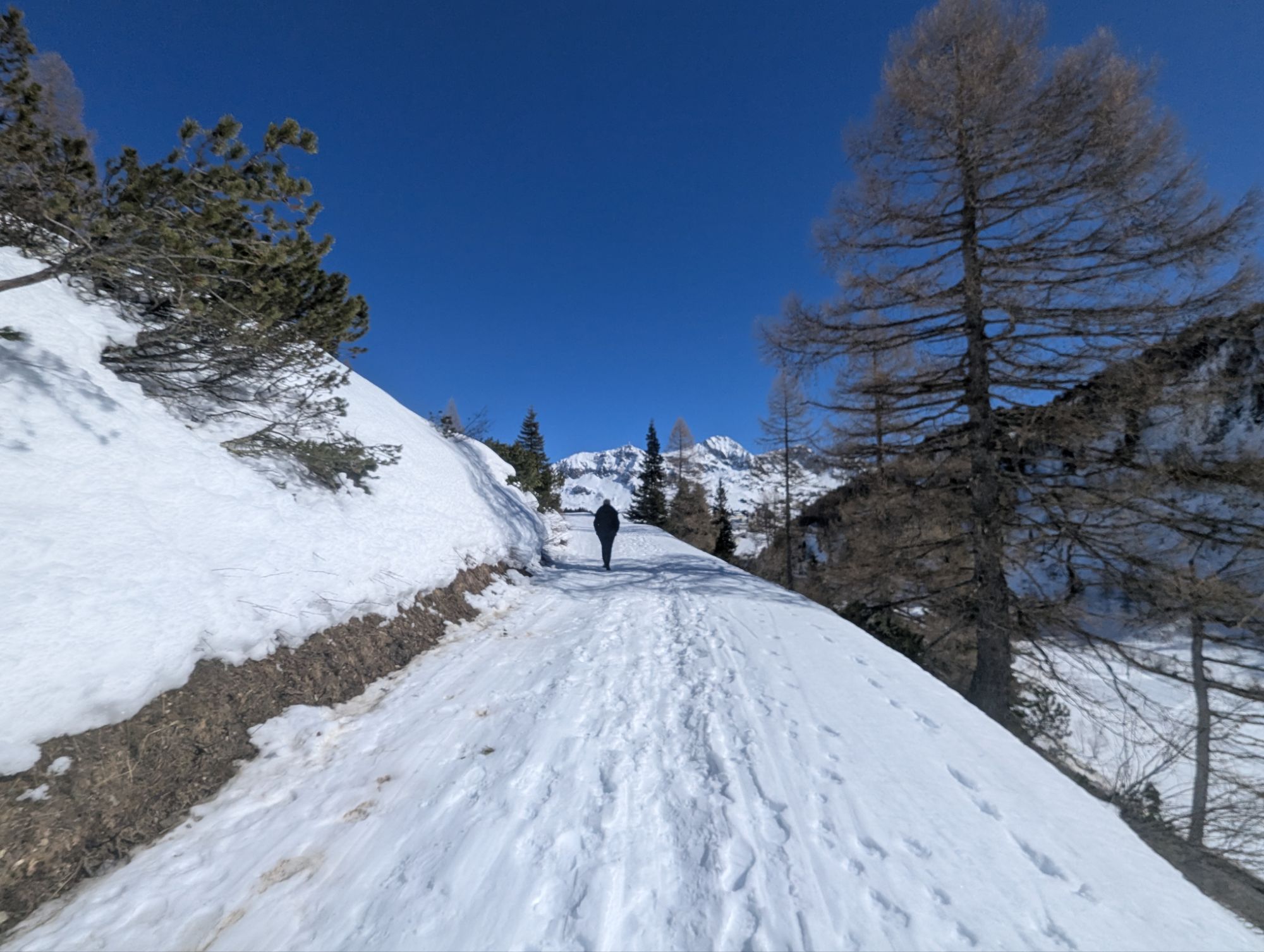 Wir leisteten uns den Luxus, eine Nacht mit Frühstück, verbrachten aber die meiste Zeit außer Haus, denn das Prachtwetter zog uns förmlich in die herrliche Natur. Denn wer weiß, vielleicht ist es das letzte Mal Schneebaden in diesem Halbjahr.