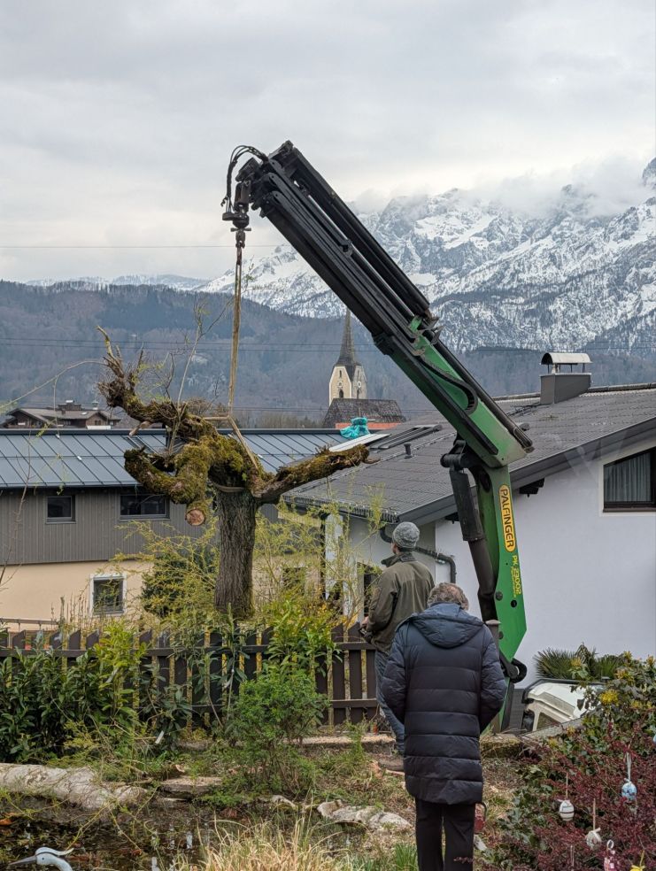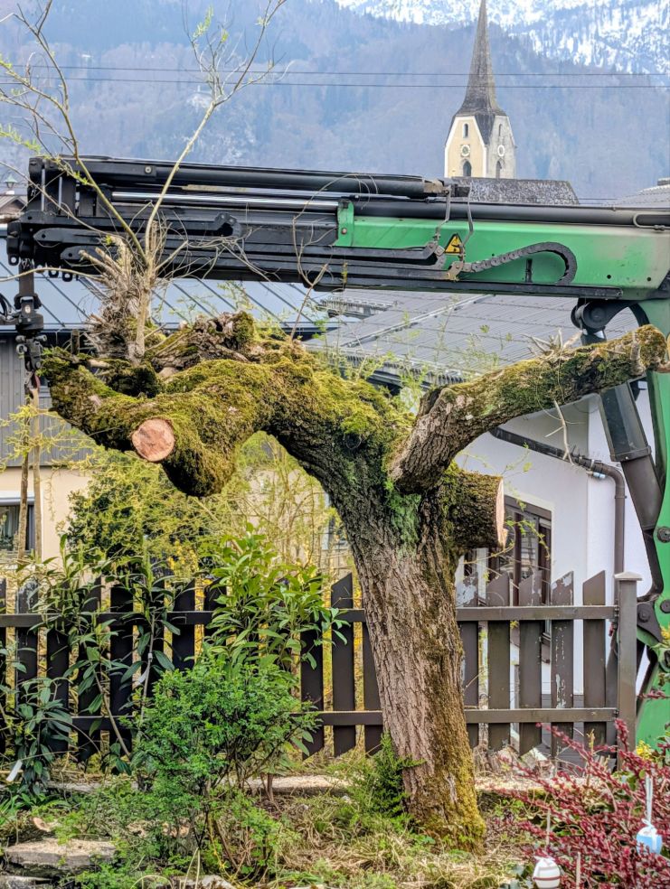 Mit fortschreitendem Alter wurde es mir zu viel und ich bat meinen Techniker, den Baum zu fällen und gegen einen anderen immergrünen auszutauschen. Da mein Mann diesen Baum eigenhändig gepflanzt hat, fiel ihm das schwer. Verständlich.