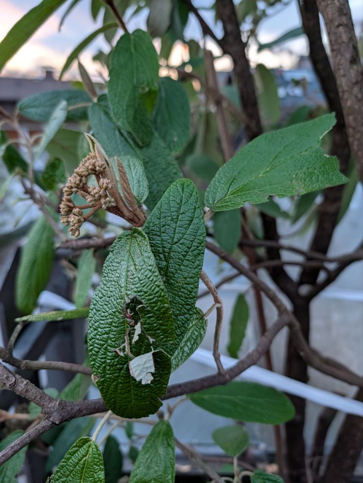 Hinter dem Haus stand bisher eher unbemerkt der Strauch eines runzelblättrigen Schneeballs. Keine sehr attraktive Bezeichnung für eine Pflanze, aber vom Wuchs her ideal. Wir baten unseren benachbarten und überaus geschickten Handwerkersohn, die Bäume und Sträucher mithilfe seines Krans um zu pflanzen, was er zu unserer Zufriedenheit erledigte. Und weil wir gerade dabei waren, erhielt unser Magnolienbaum einen neuen Platz.