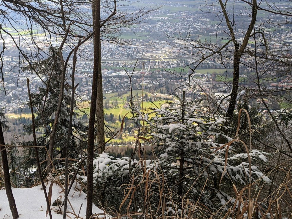 Rasch wechselten die Stimmungen zwischen düster und hell. Im Tal sattes grün, am Himmel strahlender Sonnenschein.