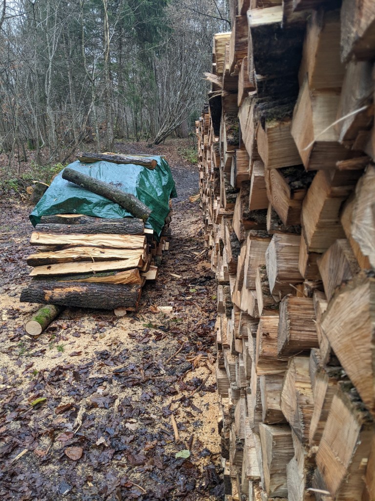 Wir haben dieses Jahr ebenfalls Buchenholz gebunkert, denn unsere Vorräte gehen zu Ende. Der Preis war in Ordnung und der Bauer half beim Ausladen. Geschleppt hat mein Techniker. Ich habe geschlichtet. Wir befeuern lediglich den offenen Kamin damit. Sein Feuer ist zwar romantisch, würde jedoch im Ernstfall keine Lösung sein. Außerdem ist eine Holzheizung einer der größten Luftverschmutzer überhaupt. Vor allem wenn unsachgemäß geheizt wird und der Kamin versottet.
