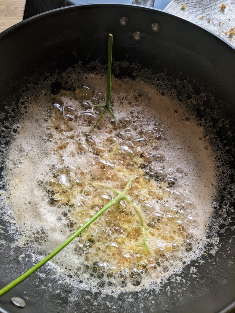 Ich weiß nicht, ob ich es schon erwähnt habe-, aber mein Techniker ist ein Süßer. Also süß im Sinne von Zuckerfan, aber ansonsten natürlich auch; -)). Er wünschte sich gebackenen Holunderstrauben. Und wer könnte dem Liebsten schon einen Wunsch ausschlagen. Ich nicht.