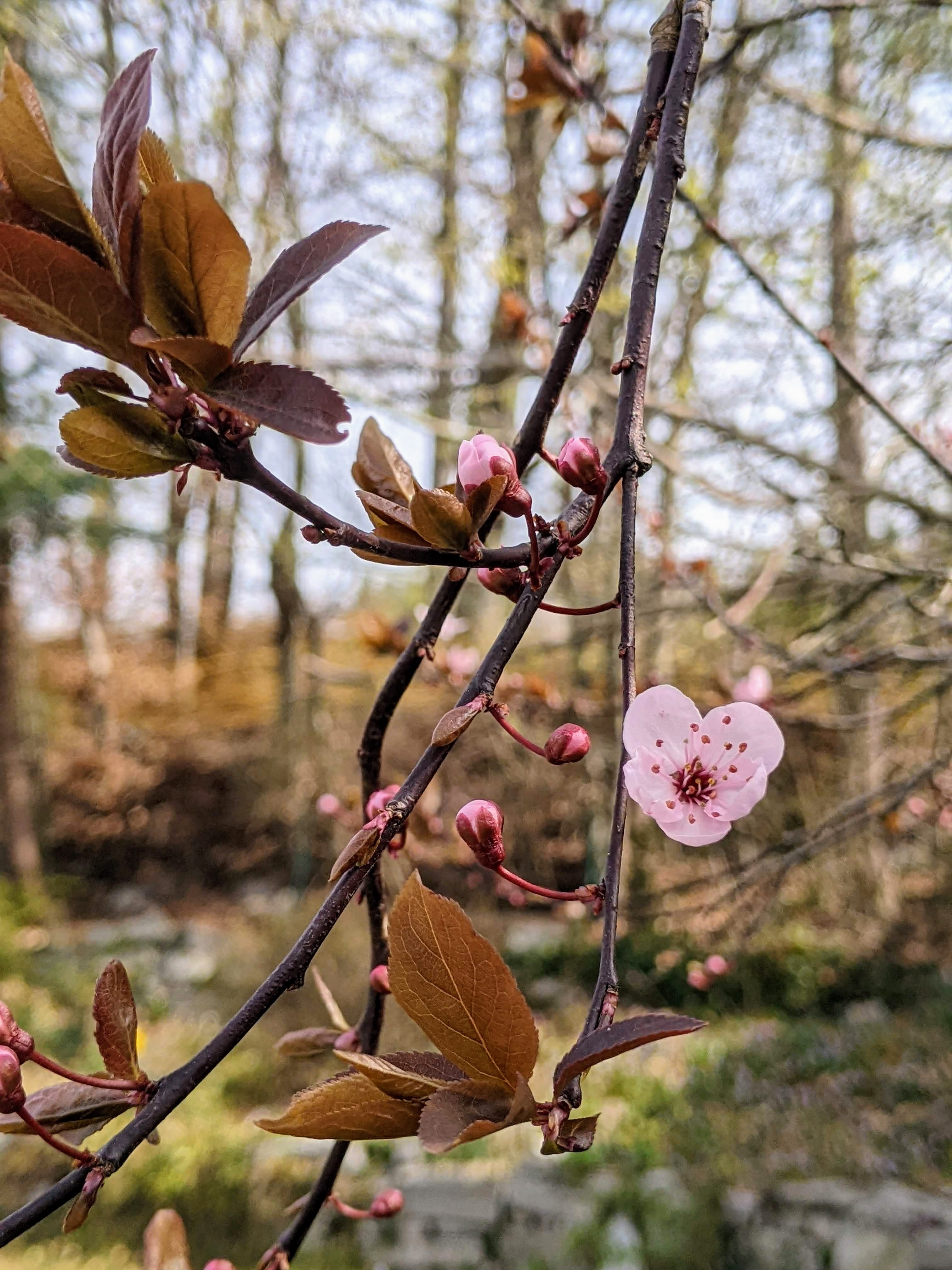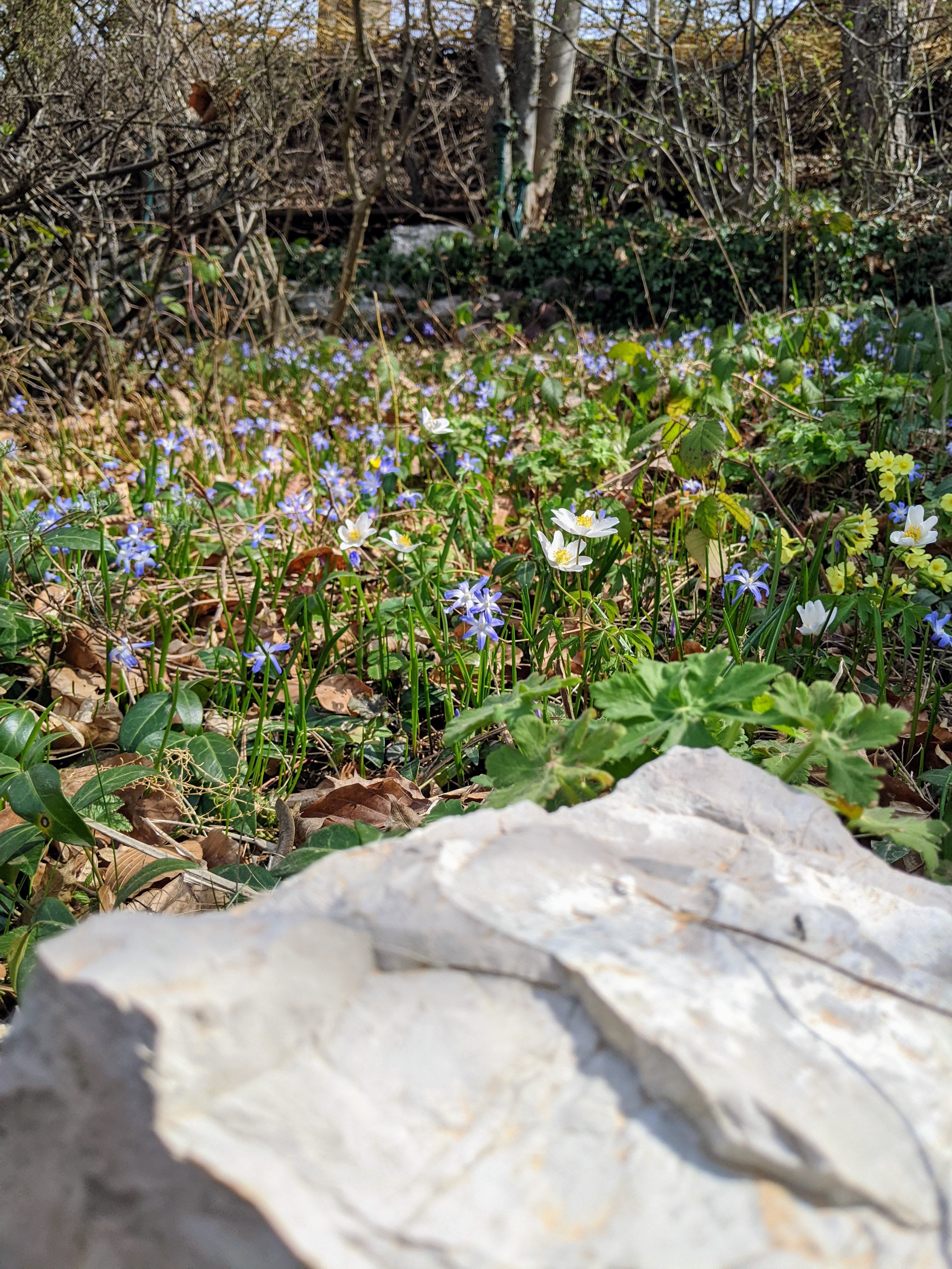 Abschließend ein Rundgang durch den Garten. Der vor zwei Jahren gesäte Bärlauch sprießt schon. Die Wildkirsche blüht und die restlichen Frühblüher ebenfalls. Schön schauts aus.