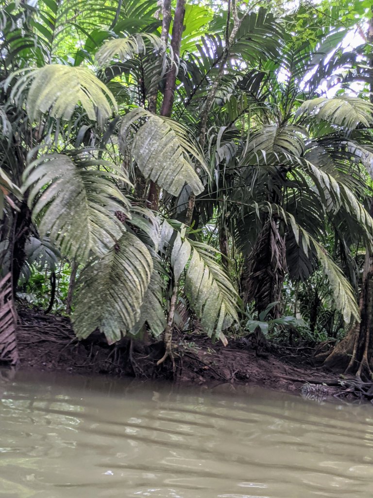 Auf unseren Fahrten durch den Dschungel sehen wir Tucans, Reiher, und Rallen, Leguane, Kaimane, bunte Eidechsen, Fledermäuschen, Faultiere und Brülläfchen. Was wir nicht sehen sind Schlangen.🐍Das Szenario unberührter Natur ist fantastisch und der bisher beeindruckendste Teil der Rundreise. Wir fühlen uns in die Uhrzeit zurück versetzt. Am Ende fahren wir in einen in den Fünfzigern von Tropenholz Händlern angelegten Seitenarm, der für Transportzwecke angelegt wurde. Damals wurden viele Quadratkilometer abgeholzt. Heute ist alles wieder mit sogenanntem Sekundärwald bedeckt. Der Führer lässt den Motor abstellen und bittet uns für zwei Minuten zu schweigen, die Augen zu schließen und mit dieser kleinen Geste der Natur Respekt zu zollen. Eine schöne Idee bei der alle gerne mitmachen…