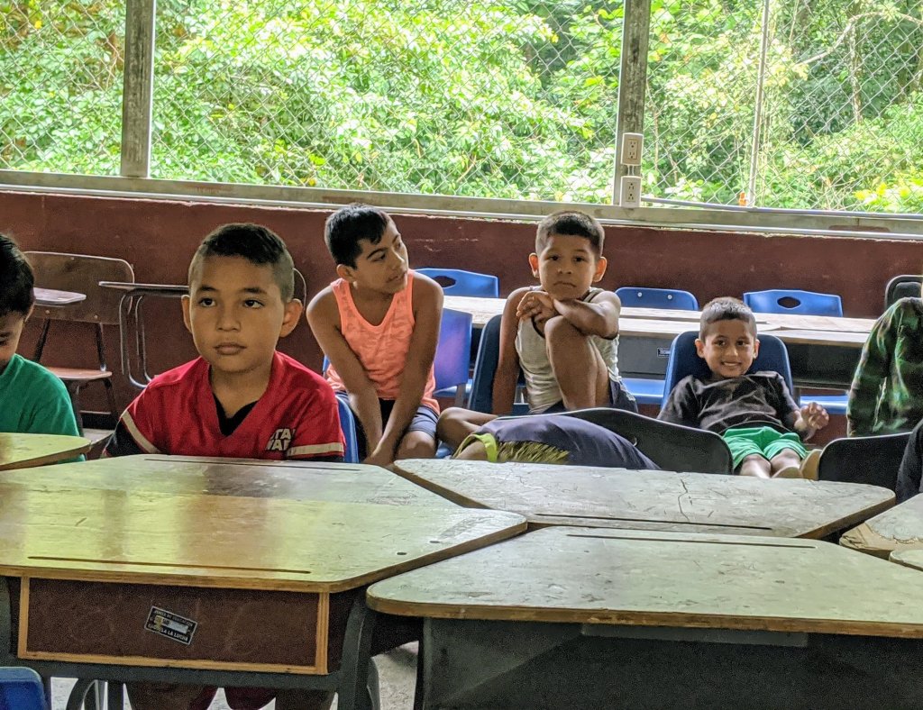 Sonntags in die Schule? Es sind gerade Sommerferien in Costa Rica, aber da wir im Zuge unserer Reise ein paar Dollar für die Schule gespendet haben, kommen heute alle Kinder, um uns kennen zu lernen. Sonntags in den Ferien. Wir staunen.
