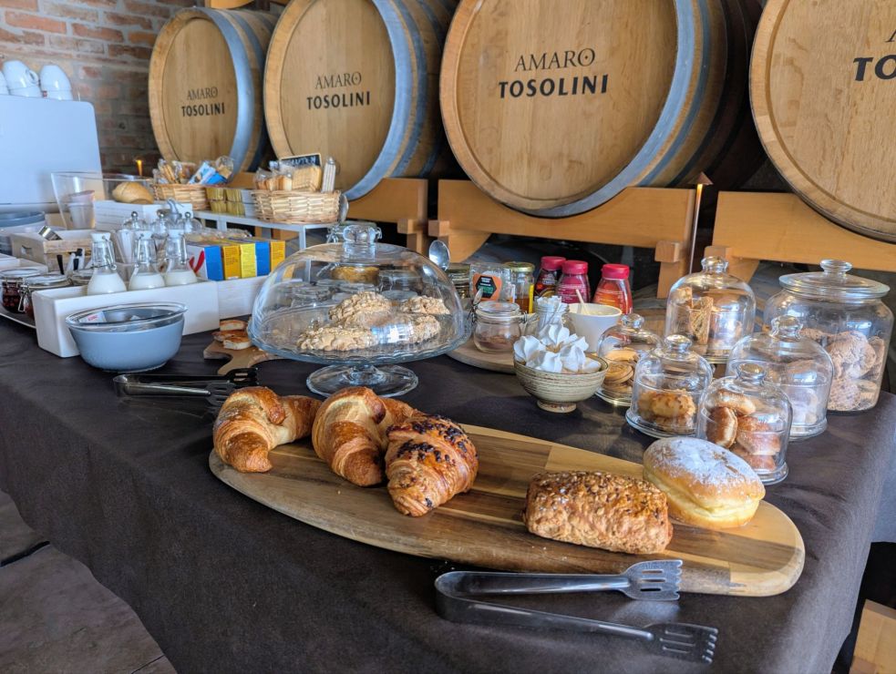 Den Hitzepropheten zum Trotz zeigte sich der Juli kühl und regnerisch. Wir flohen zwei Tage nach Italien in ein entzückendes Hotel am Lande. Wir hatten Glück und erwischten ein sonniges Wetterfenster in einem Adriatief. Unsere Unterkunft war ein ehemaliger Bauernhof, der von einem engagierten Paar liebevoll in eine wunderbare Oase umgewandelt worden ist. Ein romantisches Tiny House stand ebenfalls zur Auswahl, aber wir übernachteten in einem der geschmackvoll eingerichteten Zimmer. Herrliche Stille umgab uns. Nur das Zirpen der Grillen war zu hören und das leise Schnarchen meines Technikers.