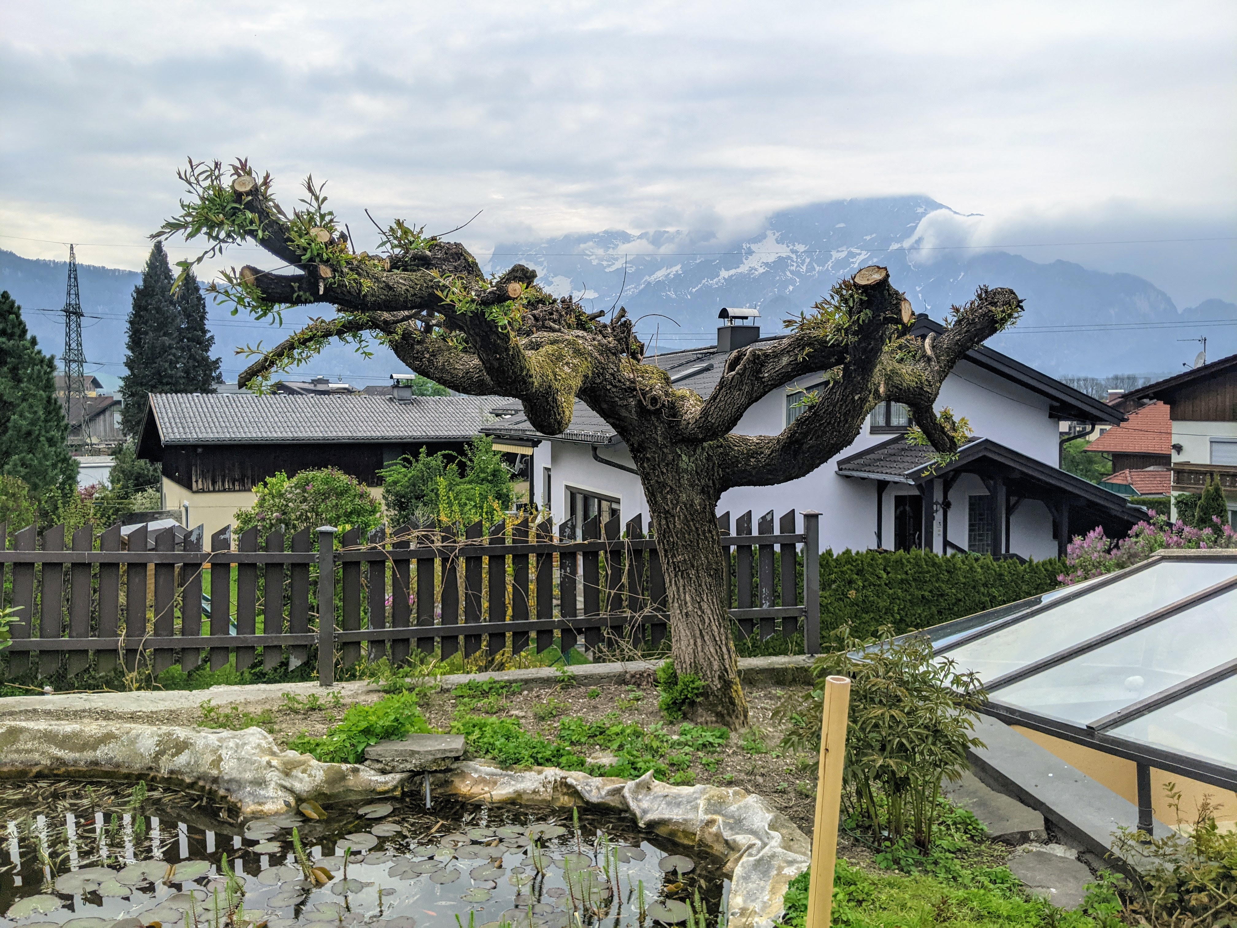 Unsere Weide hat heuer im März einen radikalen Kahlschlag erfahren. So radikal, dass wir uns schon ein wenig Sorgen gemacht haben, ob sie noch mal wird. Mein Techniker hat ohnehin keine Geduld und dachte schon- das war des Guten zu viel.