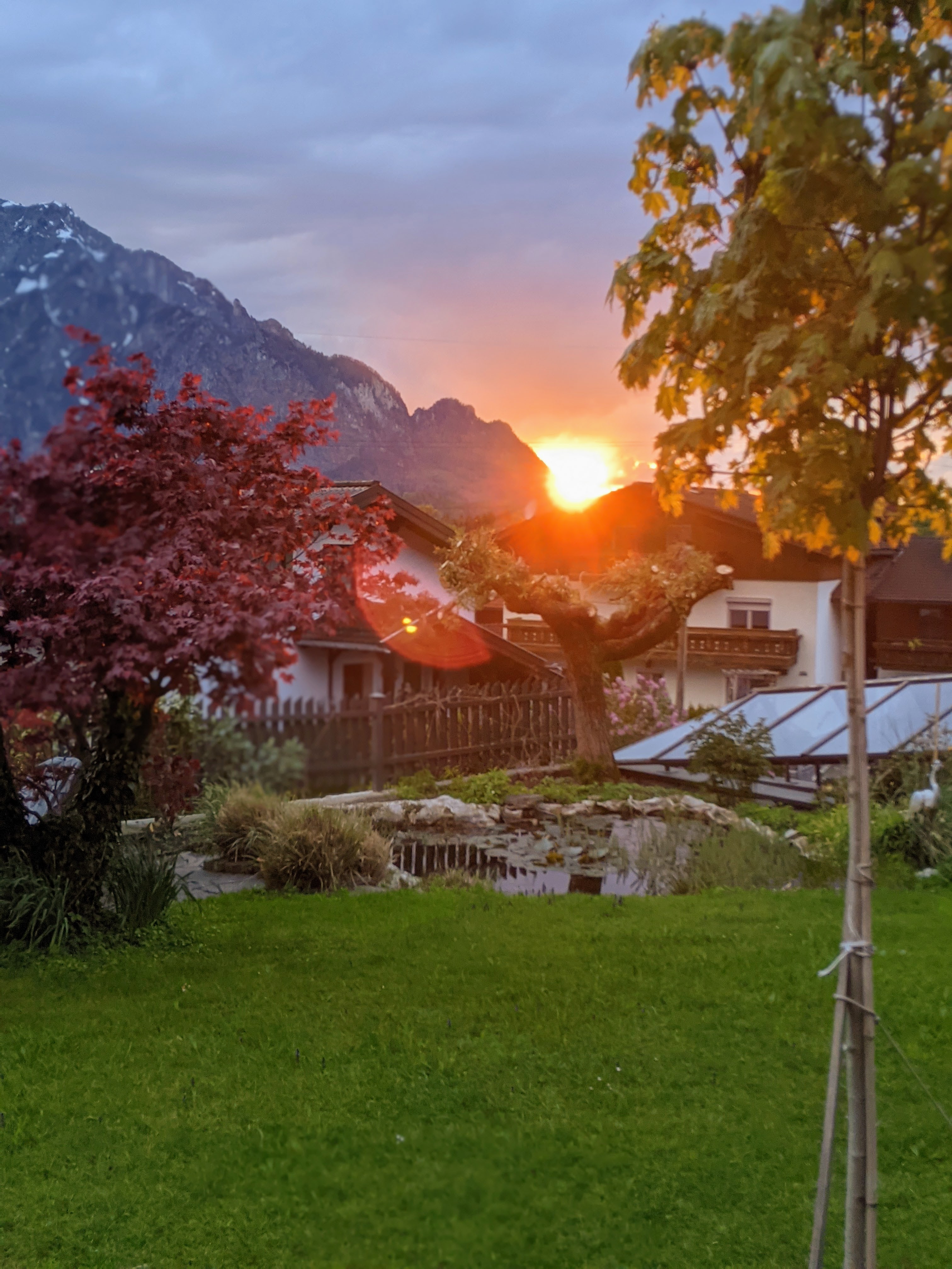 Gestern Abend gab es einen außergewöhnlichen Sonnenuntergang. Beinahe schien es, als wolle sich die Schlechtwetterfront mit einer besonderen Inszenierung verabschieden. Gerade rechtzeitig zum Wochenende. Zumindest bei uns in Salzburg sind die kommenden drei Tage strahlender Sonnenschein und sommerliche Temperaturen prognostiziert. Am Montag 28 Grad! Dann werden wir morgen das Womo überstellen und hurtig an der Fertigstellung des Schiffes arbeiten, damit es Ende Mai auf dem Attersee losgehen kann …