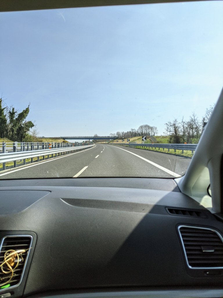 Aus alter Gewohnheit machten wir Rast an unserem Lieblings-Autogrill mit dem für uns weltbesten Cappuccino. Leider bekam die Frau hinter dem Tresen eine Panikattacke, weil wir uns nicht sofort den Gehorsamslappen vor das Gesicht zogen. Daraufhin ließ ich mir vom Angetrauten das Getränk ins Freie servieren. Ich habe keinen Nerv mehr für C- Hysteriker.