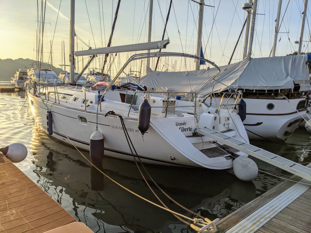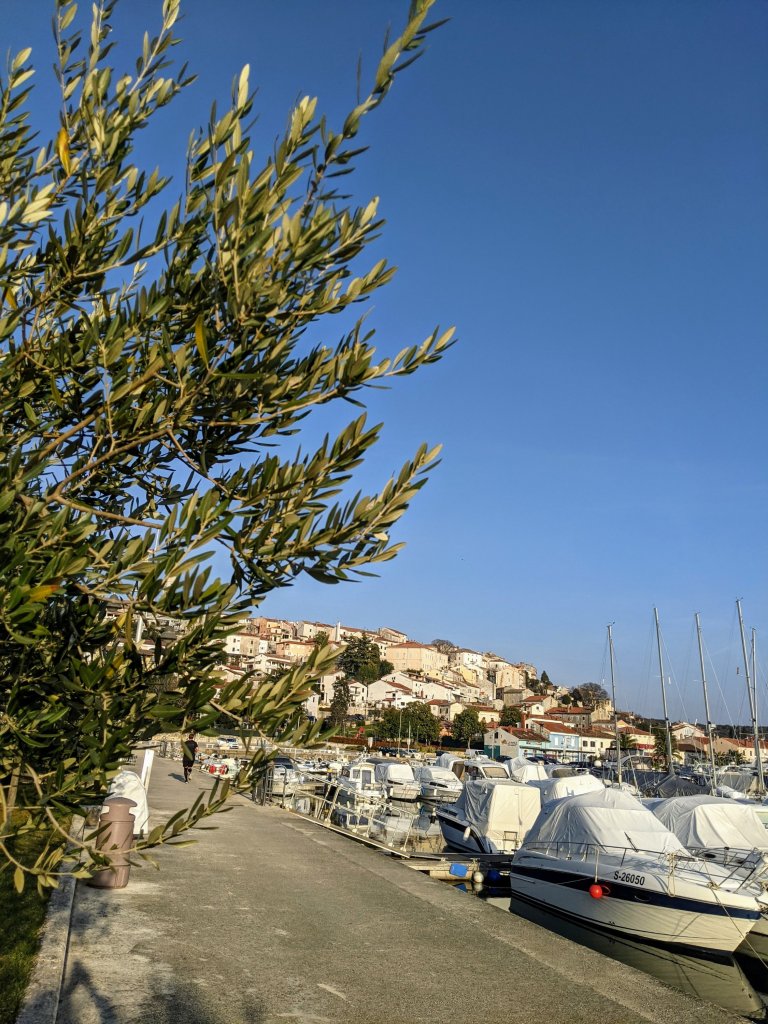 Nun sind wir angekommen, haben unser ‚Mädchen‘ bezogen und gerade bei Goran köstlichen Fisch und butterweiche Calamari genossen.🐟🦑🍷