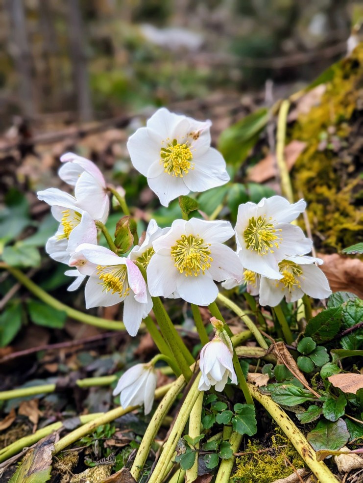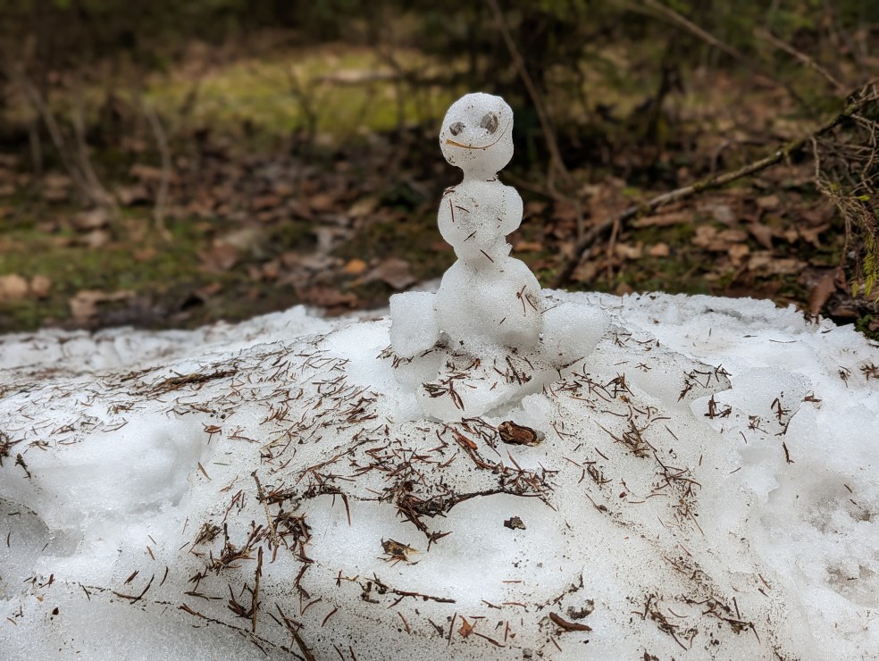 Heuer fielen uns die unzähligen Schneerosen auf, die zwischen den Bäumen und am Wegesrand besonders üppig blühten. Neben Leberblümchen die Ersten im Tal. Ab und zu fand sich noch ein Fleckchen Schnee, aber bis auf einen winzigen Schneemann war alle Pracht geschmolzen. Winter ade! Obwohl, so ganz traue ich dem Vorfrühling noch nicht.