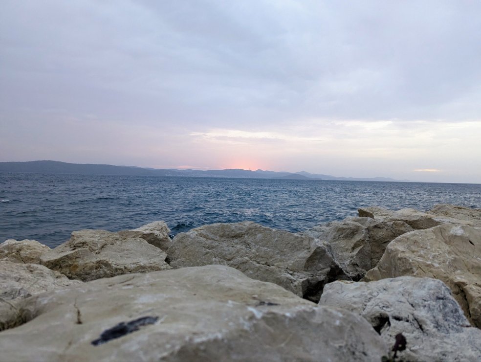 Aber zurück zur Reise. Der einzige Campingplatz unweit der Marina ist klein, familiengeführt und gut besucht. Wir hatten überlegt, in Omis zu übernachten, aber der Platz gefiel uns trotz seiner Nähe zu einem in Kroatien seltenen Sandstrand nicht wirklich. Feiner Kies ist mir persönlich ohnehin lieber. Also- auf nach Krvavica. Es stellt sich heraus, dass wir es damit gut getroffen haben und schlagen unser Lager im Schatten der Pinien auf. Der Platz ist umgeben von Bergen und nur ein paar Gehminuten vom Strand entfernt.