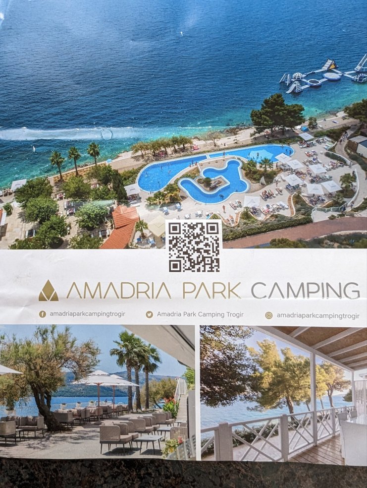 Die Altstadt von Zadar haben wir schon mehrmals besucht, deshalb fahren wir weiter Richtung Süden. Es regnet und ist merklich kühler geworden. Ideal für das Reisen mit einem Womo ohne Klimaanlage. Auf die Empfehlung meiner Tochter hin wählen wir eine luxuriöse Campinganlage, 20 km von Trogir entfernt. 700 Stellplätze auf mehreren Terrassen. Wir wählen Superior mit Meerblick. Die Anlage ist trotz Nachsaison gut besucht. Campen boomt. Es regnet noch immer. Das Einparken ist tricky und beim langwierigen Ausrichten Muckis (die Keile rutschen ständig) werden wir klitschnass. Ein unfreundlicher Nachbar macht sich Sorgen um sein Auto, obwohl noch gut zwei Meter und ein Strauch zwischen uns liegen. Die folgenden zwei Tage wird er uns ignorieren.
