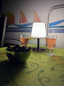 Über Google Maps finden wir eine nette Konoba mit ordentlichem Essen zu vernünftigen Preisen und beenden den Abend mit einem Gläschen Frizzante unter Muckis inzwischen regensicherer Markise. Morgen geht’s in Richtung Split/Makarsaka.